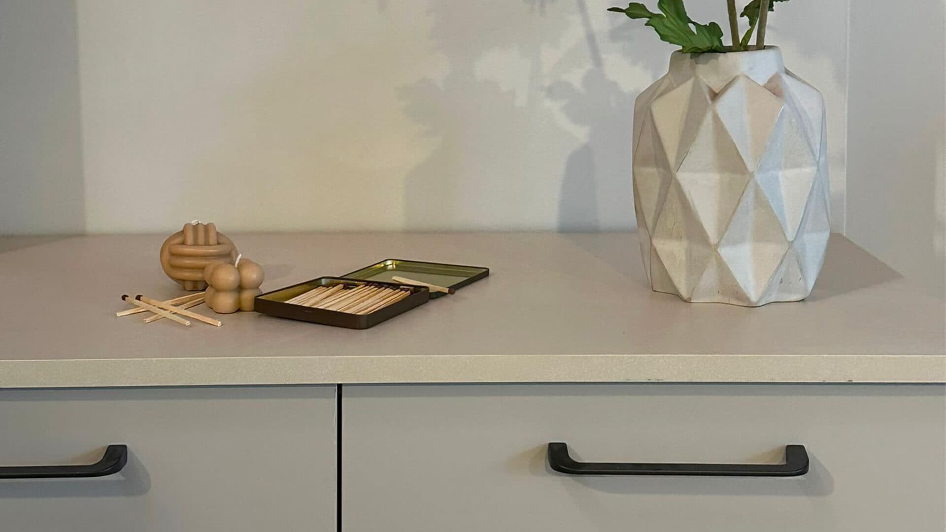 Realizzazione cucina Scandola modello Maestrale anta in legno dogato con top in Neolith satin sp.2 cm.
