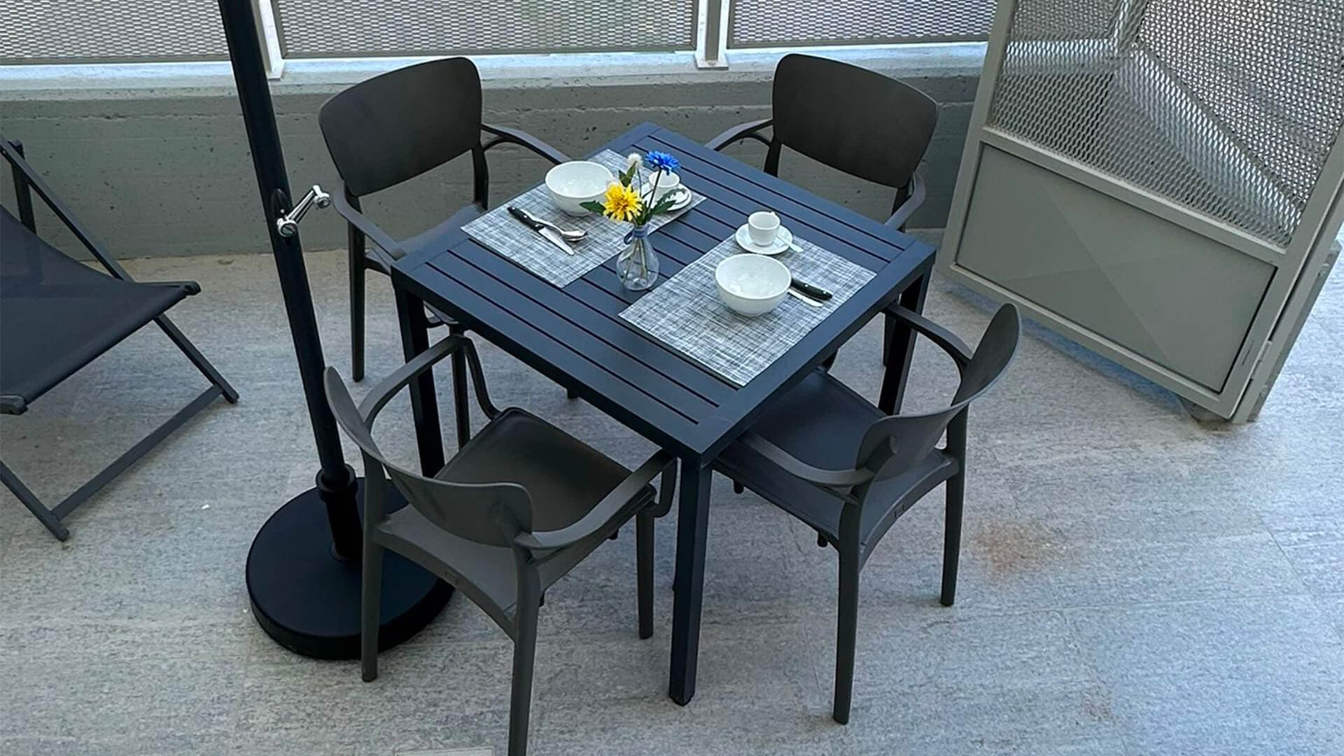 Fornitura di cucina, tavoli, sedie, divani letto, materassi e piumoni.
