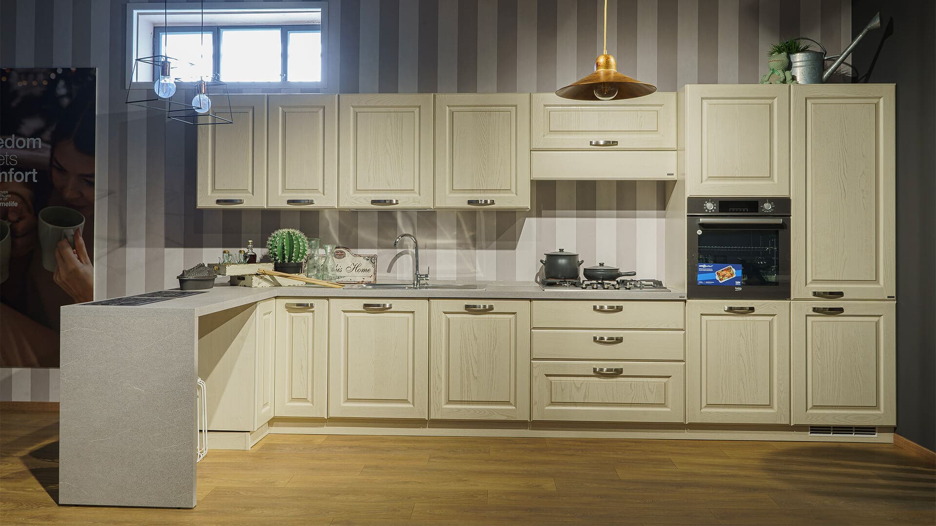 nella nostra esposizione, che comprende un centro cucine con più di 30 modelli ambientati, puoi toccare con mano i prodotti e i materiali ipotizzati su carta.