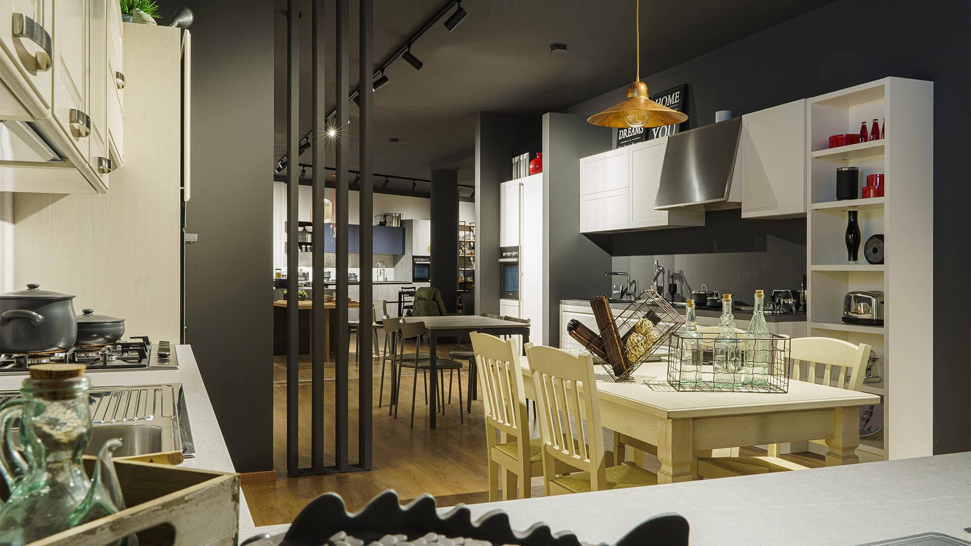 nella nostra esposizione, che comprende un centro cucine con più di 30 modelli ambientati, puoi toccare con mano i prodotti e i materiali ipotizzati su carta.